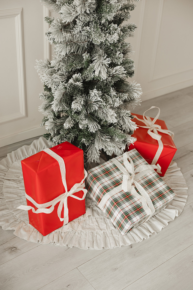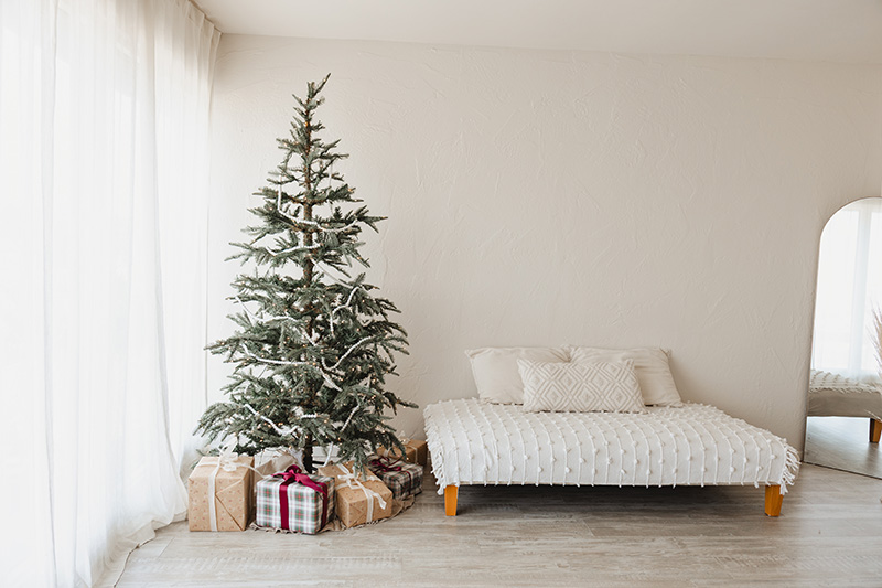 - Neutrals: Cream, beige, taupe, or soft grays balance the festive backdrop without competing with the decor.