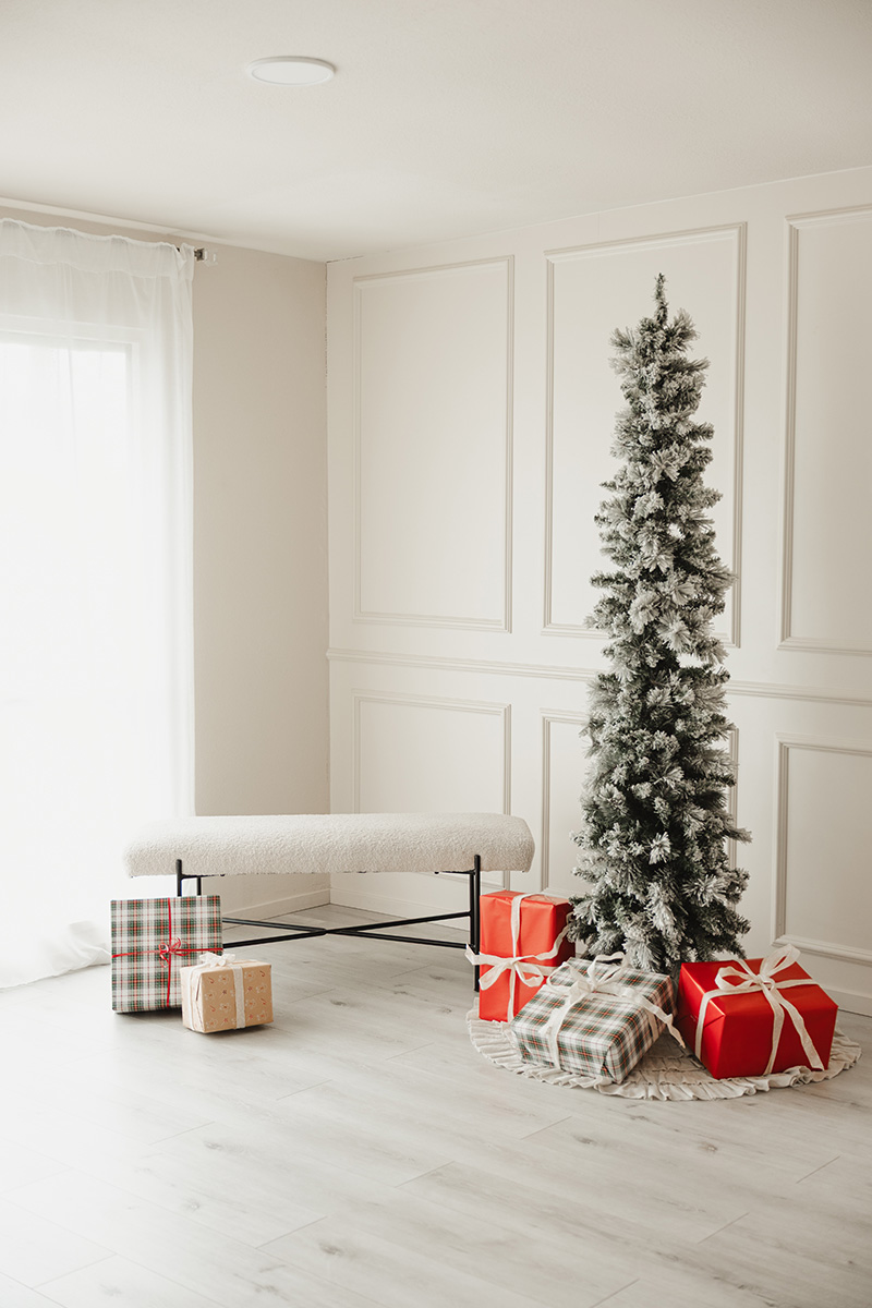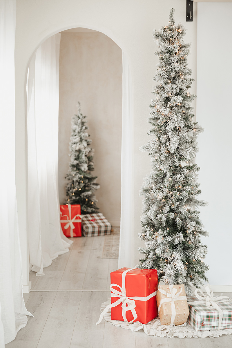 Our holiday decor is not only stylish and versatile but also completely movable throughout the studio. This means you can stage your shoot in different parts of The Villa or The Main Studio to get unique looks in a single session. We’ve designed it to be flexible so photographers and families alike can get creative with their setups.