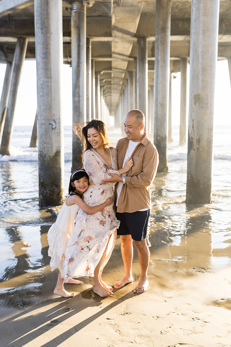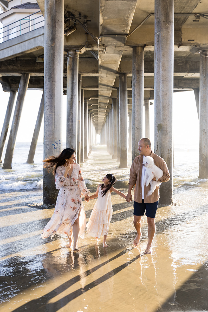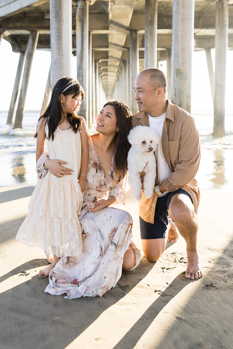 Popular spots like the Huntington Beach Pier make the perfect backdrop for capturing authentic family connections.